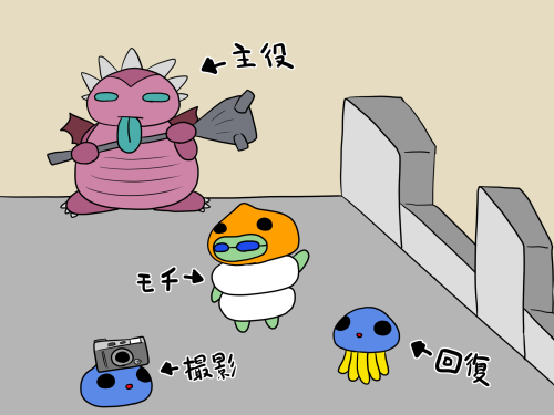 目覚めし冒険者の広場の冒険日誌用の写真を撮ってました。パーティ構成(妄想)は上記。